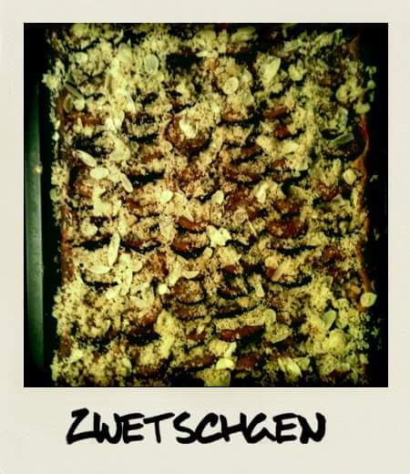 Dann mit den entsteinten und halbierten Zwetschen mit der Schnittkante nach oben ordentlich belegen. Zimtzucker darüber streuen und kurz ziehen lassen.
