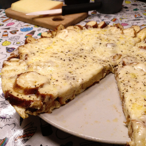 Letztlich noch den Käse darüberstreuen, ggf noch mal pfeffern und alles bei aufgesetztem Deckel auf sehr kleiner Flamme garen lassen (ca 15-20 Minuten).